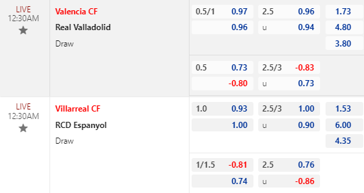 * Valencia vs Valladolid: Valencia vẫn duy trì kèo chấp 3/4 với điểm ăn cân bằng giữa 2 cửa, trong khi tài xỉu 2 1/2 cũng gần như không dịch chuyển. Việc duy trì tỷ lệ chấp như vậy trước đối phương còn đang có thứ hạng cao hơn là tín hiệu rất tích cực dành cho "bầy dơi".