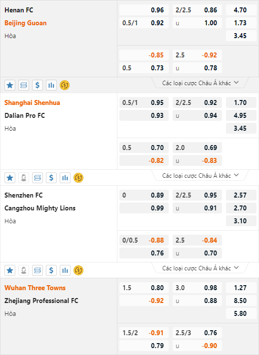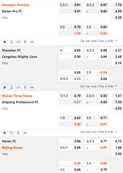 CHỐT: Wuhan Three Towns -1 1/2