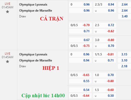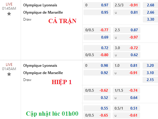 Chốt kèo trực tiếp trận Lyon vs Marseille (01h45):