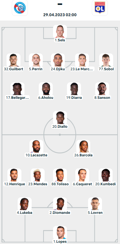 Đội hình ra sân Strasbourg vs Lyon (02h00, VĐQG Pháp)