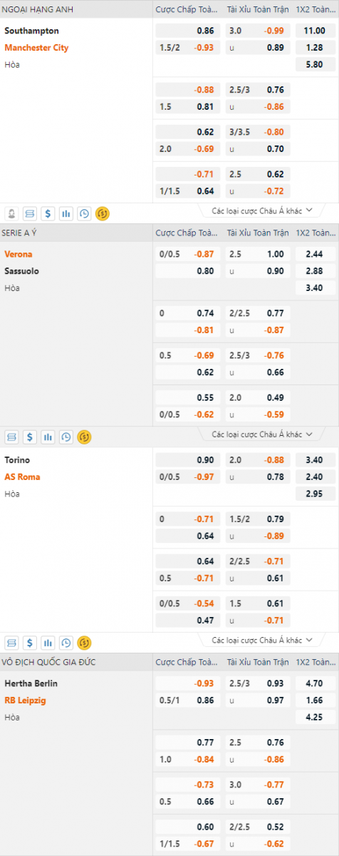 Tung ra sân đội hình với đầy đủ các hào thủ, Man City cho thấy quyết tâm rất cao ở trận này. Trên thị trường, việc đại diện thành Manchester duy trì kèo chấp 1 3/4 đem đến niềm tin rất lớn. Ở phương diện tổng bàn thắng, với mức kèo 3 hòa được duy trì cùng thang điểm ăn cân bằng, hy vọng là cũng dành cho mốc trên ở đây.