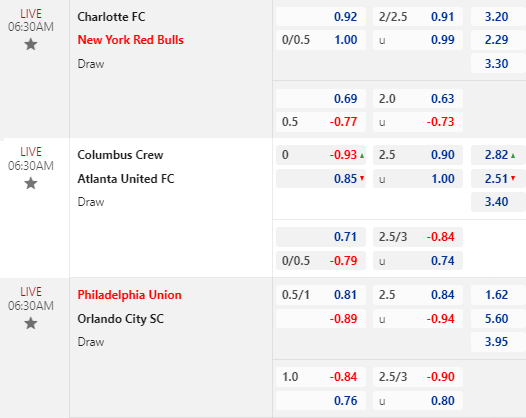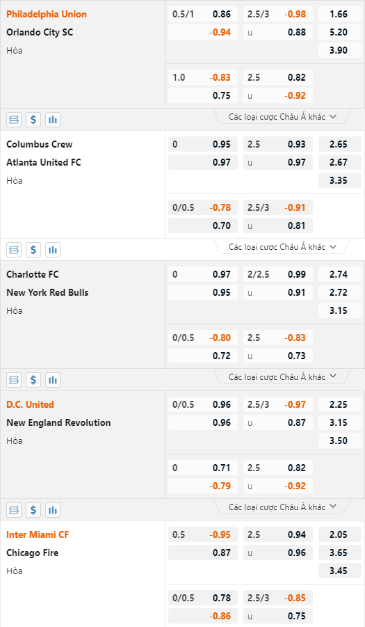 * Philadelphia Union vs Orlando City: Philadelphia Union duy trì kèo chấp “cứng” trước đối thủ không hề dễ chơi. Thực tế thì Philadelphia Union thường thi đấu tốt tại sân nhà của mình, còn Orlando City vừa thua đối thủ dưới cơ Charlotte ngay trên sân nhà.