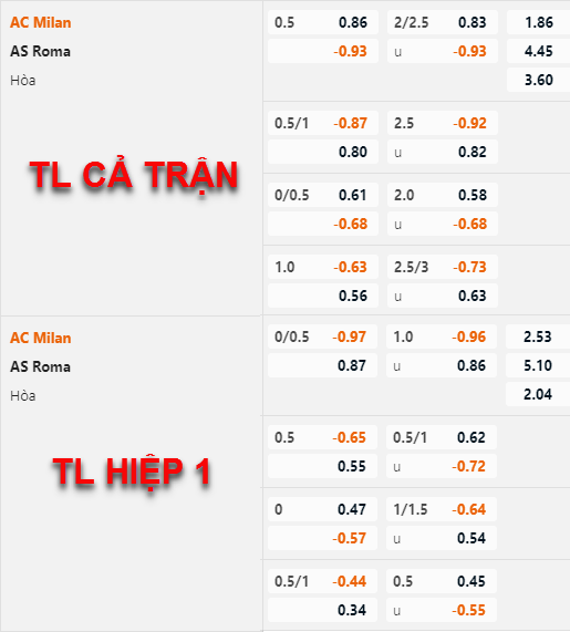 AEGoal chốt kèo bóng đá trực tiếp trận AC Milan vs AS Roma diễn ra lúc 02h45 ngày 09/01/2023 trong khuôn khổ giải VĐQG Italia sau khi dựa trên tính toán, chuyển động về kèo châu Á và đội hình ra sân của 2 đội.