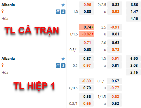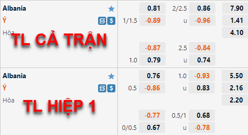 Tỷ lệ chấp của Italia có xu hướng giảm điểm thời gian vừa qua. Hiện tại đội khách chỉ có tỷ lệ chấp chính ở mức 1 hoà thay cho mức chấp 1 1/4 ở thời điểm chúng tôi cập nhật lần trước. Trong khi đó, tỷ lệ tài xỉu của trận đấu ít biến động hơn khi mốc 2 1/4 vẫn là mốc chính, điểm ăn cửa tài được điều chỉnh giảm nhưng không nhiều.