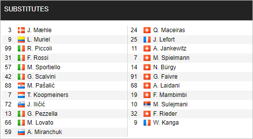 - Atalanta: Hateboer và Muriel chấn thương còn Palomino bỏ ngỏ khả năng ra sân.