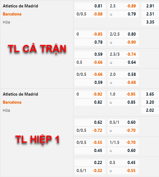Tham khảo: Atletico Madrid +1/4 cả trận