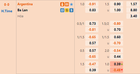 Hiện tại tỷ lệ chấp chính của ĐT Argentina trên sàn giao dịch châu Á đã được nhà cái đẩy lên mức 1 1/4 thay cho mức 1 hoà ở lần chúng tôi cập nhật trước. Tỷ lệ tài xỉu của trận đấu cũng có những diễn biến xuôi chiều, mốc 2 1/4 vẫn là mốc tài xỉu chính của trận đấu nhưng điểm ăn của cửa tài đã được điều chỉnh giảm tương đối nhiều.