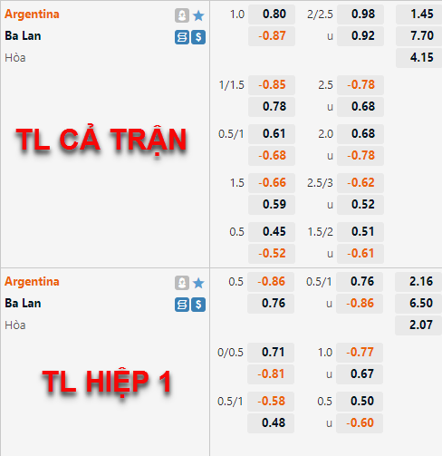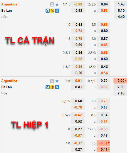 Diễn biến trên thị trường thời gian qua cho thấy giới đầu từ trên sàn châu Á đang hoàn toàn tin tưởng vào chiến thắng của Argentina trận này. Nhưng theo chúng tôi Argentina nhiều khả năng sẽ không có một trận đấu dễ dàng khi Ba Lan chỉ cần 1 kết quả hoà, việc lối chơi của Argentina phụ thuộc quá nhiều vào tài năng của Messi cũng là một yếu tố khó đánh giá khả năng thắng kèo của đại diện Nam Mỹ. Có lẽ lựa chọn cửa xỉu sẽ là lựa chọn hợp lý nhất cho trận đấu này