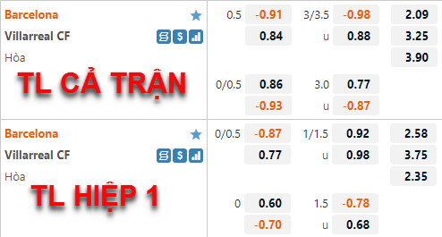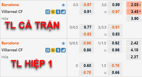 Tham khảo: Villarreal +1/4 Hiệp 1