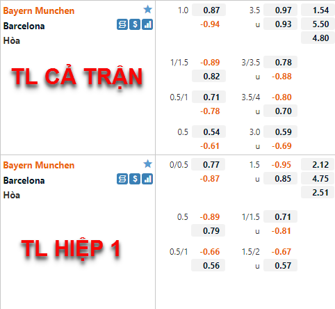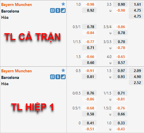 Tham khảo: Bayern Munich -1 cả trận