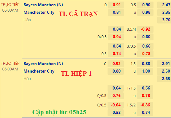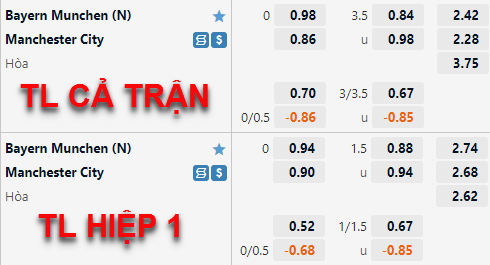 Vẫn là kèo 0:0 nhưng điểm ăn cho cửa Man City đã thấp hơn, đây là tín hiệu tích cực với The Citizens dù rằng họ không có được đội hình gồm đầy đủ các ngôi sao (một số không đến được Mỹ). Trong bối cảnh tài xỉu vẫn là 3 1/2 thì dịch chuyển về giá như vậy cho thấy cửa Man xanh sáng hơn.