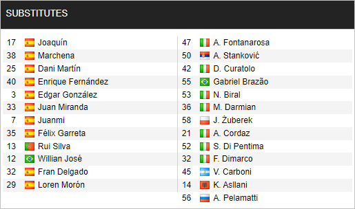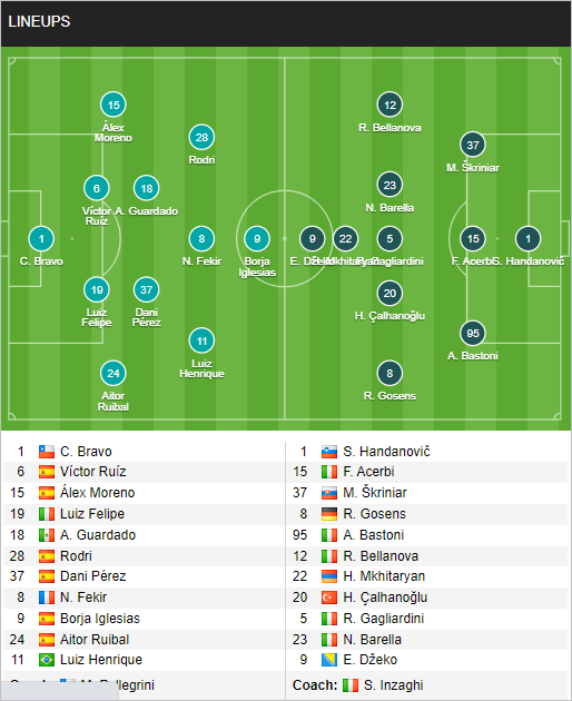 Real Betis: Silva; Montoya, Felipe, Ruiz, Moreno; Akouokou, Canales; Henrique, Fekir, Juanmi; Iglesias