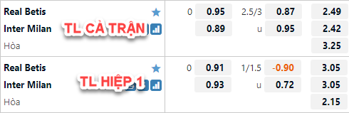 * Chốt kèo trận Real Betis vs Inter Milan (0h00 ngày 18/12)