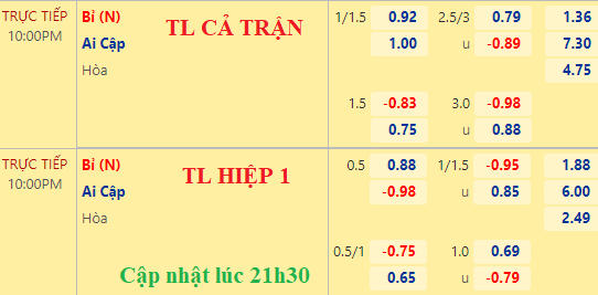(Nội dung chốt kèo sẽ xuất hiện trước khi bóng lăn khoảng 30 phút)