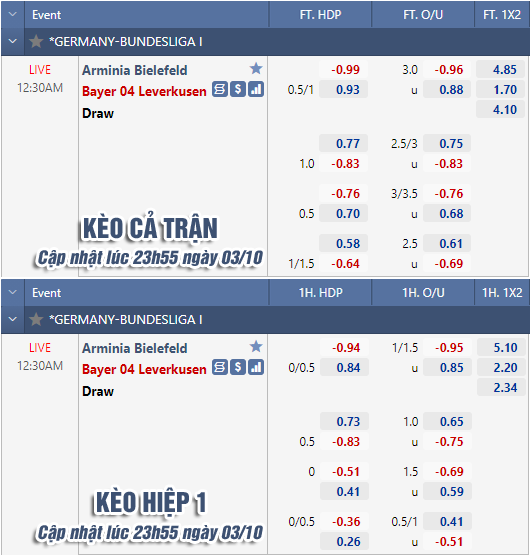 * Chốt kèo trận Bielefeld vs Leverkusen (00h30)