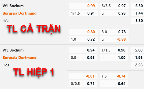 Tung vào sân đội hình rất mạnh với hy vọng tiếp tục có chiến thắng để duy trì vị trí dẫn đầu bảng. Tuy nhiên, Dortmund lại không có đà tăng điểm như kỳ vọng trên sàn giao dịch châu Á với tỷ lệ chấp 1 1/4 được duy trì ổn định suốt từ đầu phiên. Kèo biến động lớn nhất lại đến từ chỉ số bàn thắng khi được kéo lên từ 3 1/4 đến mức 3 1/2 đến sát giờ bóng lăn. Điều này rõ ràng cho thấy cơ hội ghi được bàn thắng của Bochum ngày càng được đánh giá cao và diễn biến tưng bừng bàn thắng rất dễ xảy ra.
