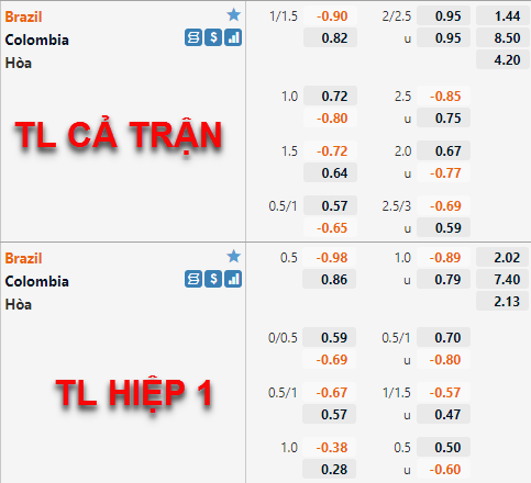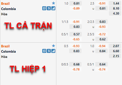 Tham khảo: Colombia +1/2 Hiệp 1