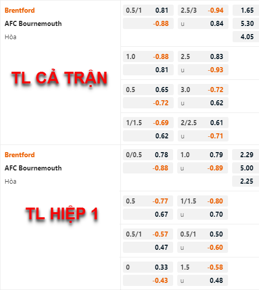 CHỐT KÈO: Brentford (-3/4) cả trận