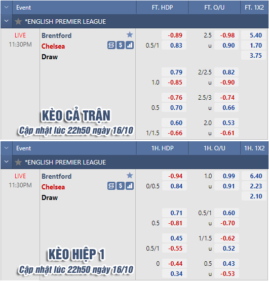 AEGoal chốt kèo bóng đá trực tiếp trận Brentford vs Chelsea diễn ra lúc 23h30 ngày 16/10 trong khuôn khổ giải Ngoại hạng Anh sau khi dựa trên tính toán, chuyển động về kèo châu Á và đội hình ra sân của 2 đội.