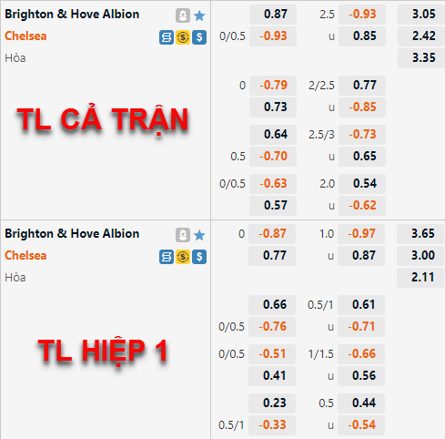 Những biến động trên sàn giao châu Á thời gian vừa qua đang đem lại dấu hiệu tích cực cho lựa chọn cửa dưới và xỉu trận này. Điều này hoàn toàn hợp lý khi Chelsea có tỷ lệ chấp tương đối thấp trận này trong khi đối thủ Brighton lại không có thành tích tốt những vòng gần đây. Rõ ràng với tỷ lệ chấp 1/4 và điểm ăn bỏ thì lựa chọn cửa dưới sẽ là một lựa chọn đáng chú ý.