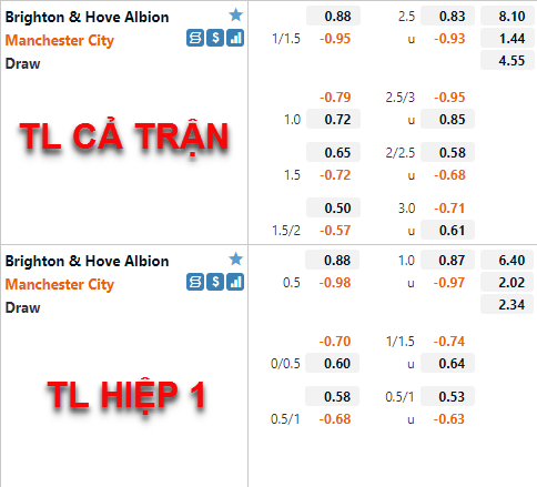 THAM KHẢO: Brighton (+1 1/4) cả trận