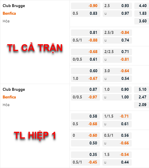 Nếu nhìn vào những thể hiện gần đây thì Club Brugge cũng không phải là một địa chỉ đáng tin, đội chủ nhà đã không thể thắng kèo châu Á kể từ sau trận hoà với Leverkusen ở vòng bảng Cúp C1 diễn ra năm trước, trong khi Benfica thi đấu rất ổn định trên sân khách. Có lẽ lựa chọn cửa xỉu là một lựa chọn tốt nhất trận này, khi đây mới chỉ là trận đấu lượt đi, có thể hai đội sẽ thi đấu thận trọng hơn.