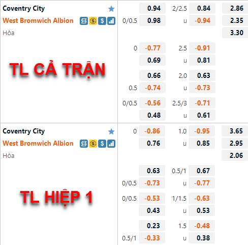 AEGoal chốt kèo bóng đá trực tiếp trận Coventry City vs West Brom diễn ra lúc 02h45 ngày 22/12/2022 trong khuôn khổ giải Hạng Nhất Anh sau khi dựa trên tính toán, chuyển động về kèo châu Á và đội hình ra sân của 2 đội.