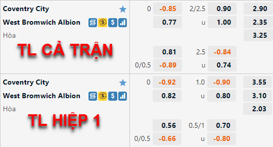 Tỷ lệ của West Brom có xu hướng tăng điểm thời gian vừa qua. Đội khách hiện tại vẫn duy trì mức chấp chính 1/4 nhưng điểm ăn của cửa trên đã được nhà cái điều chỉnh giảm tương đối nhiều so với lần chúng tôi cập nhật lần trước. Tương tự bên phía tỷ lệ tài xỉu cũng có xu hướng tăng điểm nhưng không nhiều, mốc 2 1/4 vẫn là mốc chính và điểm ăn của cửa tài được điều chỉnh giảm