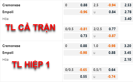 Ngay sau khi 2 đội công bố danh sách đá chính, Cremonese có đà tăng điểm chóng mặt trên sàn giao dịch châu Á. Từ tỷ lệ chính với định mức 0:0 hồi đầu phiên, đội chủ nhà đã lên kèo chấp 1/4 cùng lợi điểm cân bằng giữa các lựa chọn đối lập. Dù bất lợi về nhiều yếu tố chuyên môn nhưng rõ ràng là tín hiệu tích cực để hy vọng Cremonese cải thiện thành tích.