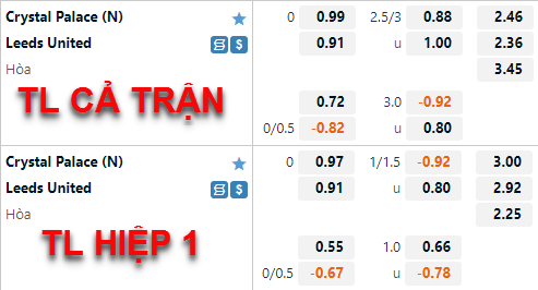 Với những diễn biến trên sàn giao dịch châu Á thời gian vừa qua có thể thấy lựa chọn cửa dưới và xỉu đang có những tín hiệu tích cực. Điều này hợp lý khi Crystal Palace có lối chơi thực dụng và phong độ tốt ở giai đoạn này, trong khi Leeds vẫn tiếp tục duy trì lối chơi cởi mở. Rõ ràng đội bóng sẽ gặp rất nhiều khó khăn khi phải đối đầu với đội bóng chơi chắc chắn.