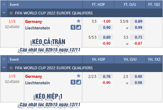 * Chốt kèo trận Đức vs Liechtenstein (02h45 ngày 12/11)