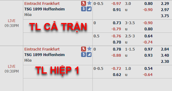 Eintracht Frankfurt vẫn duy trì được tỷ lệ chấp đồng banh như thời điểm sáng nay, thậm chí lợi nhuận cho cửa chủ nhà còn dịch chuyển theo chiều hướng tích cực, từ mức bỏ về còn 0.95. Ở mức tài xỉu, sàn châu Á chứng kiến sự biến động từ 3 hòa với điểm ăn thấp cho cửa tài lên thành 3 1/4 với điểm bỏ đôi chút cho cửa tài.