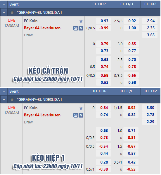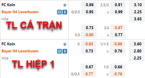 * Chốt kèo trận FC Koln vs Leverkusen (00h30 ngày 10/11)