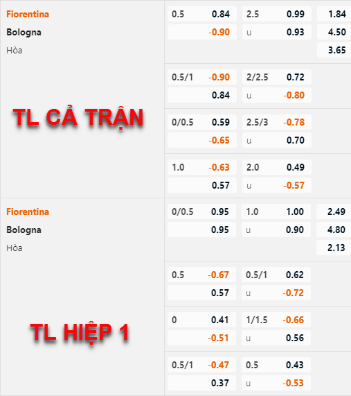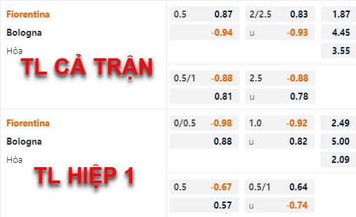 Tỷ lệ chấp của Fiorentina có đôi chút tăng điểm so với lần chúng tôi cập nhật sáng nay, hiện tại mức chấp 3/4 đã được lên gần tới mức chấp chính của trận đấu thay cho mức chấp 1/2 trước kia. Trong khi đó mốc tài xỉu của trận đấu cũng có xu hướng tăng điểm rõ rệt, mốc chính 2 1/4 sáng nay đã được nhà cái thay thế bằng mốc 2 1/2 ở thời điểm hiện tại.