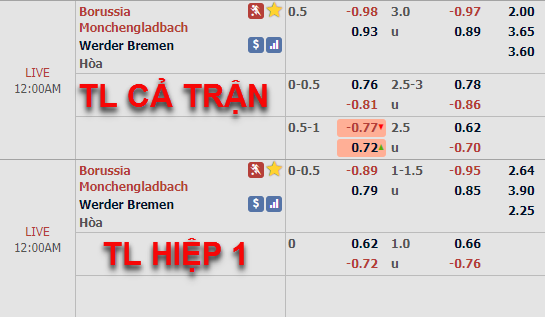 Tỷ lệ của trận đấu trên sàn giao dịch châu Á đã có những biến động đáng kể. Tỷ lệ chấp chính 1/4 của Monchengladbach thời điểm chúng tôi cập nhật chiều này đã được nhà cái điều chỉnh thành mức tỷ lệ chấp 1/2 ở thời điểm hiện tại. Trong khi đó, mức tỷ lệ tài xỉu của trận đấu vẫn được giữ ở mức 3 hoà nhưng điểm ăn của cửa nhiều bàn thắng đã được điều chỉnh giảm.