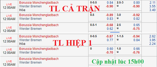 CHỐT KÈO TRỰC TIẾP trận Gladbach vs Bremen (23h00)
