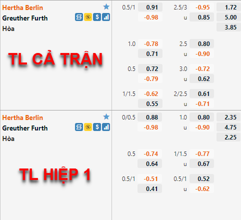 Sự có mặt của Kevin Boateng, Serdar hay Tousart đã giúp Hertha Berlin giữ được sự ổn định cần thiết trên sàn giao dich châu Á. Kèo chấp 3/4 vẫn được duy trì suốt từ đầu phiên đến thời điểm trận đấu chuẩn bị diễn ra. Trong khi đó, kèo Tài-Xỉu đã bị điều chỉnh từ mức 2 3/4 xuống còn 2 1/2 ở thời điểm hiện tại. Đó là biến động rất lớn cho một trận đấu tại Bundesliga.