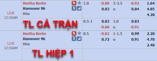 Tham khảo: Hertha Berlin -3/4 cả trận