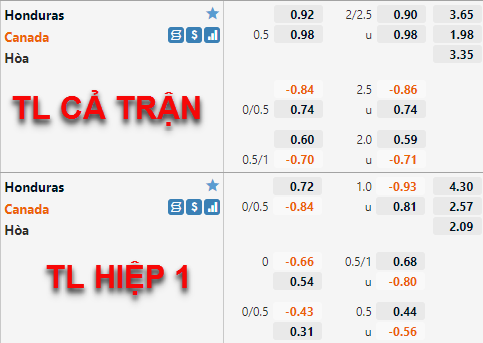 Canada -1/2 cả trận
