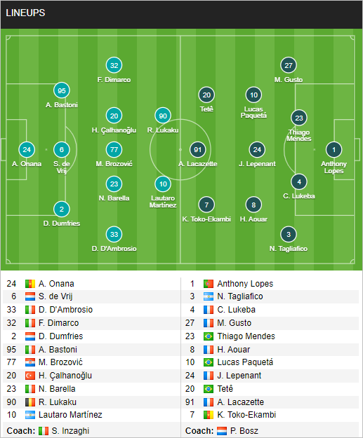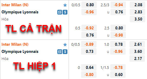 * Chốt kèo trận Inter Milan vs Lyon (01h30 ngày 31/7)