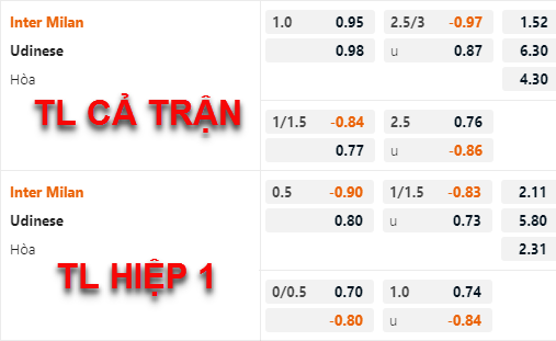 CHỐT KÈO: Inter Milan (-1 1/4) cả trận