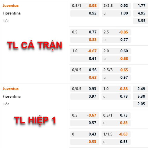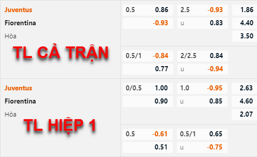 Tỷ lệ chấp của Juventus có xu hướng tăng điểm thời gian vừa qua. Hiện tại đội chủ nhà duy trì mức chấp chính 3/4 thay cho mức 1/2 ở lần chúng tôi cập nhật lần trước. Trong khi đó tỷ lệ tài xỉu của trận đấu lại có dấu hiệu giảm điểm, mốc 2 1/4 vẫn là mốc chính của trận đấu nhưng điểm ăn của cửa xỉu đã được điều chỉnh giảm so với trước đây.