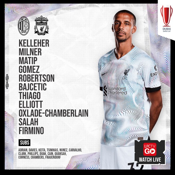 - Liverpool (4-3-3): Kelleher - Ramsay, Matip, Gomez, Robertson - Elliott, Thiago, Keita - Salah, Firmino, Nunez
