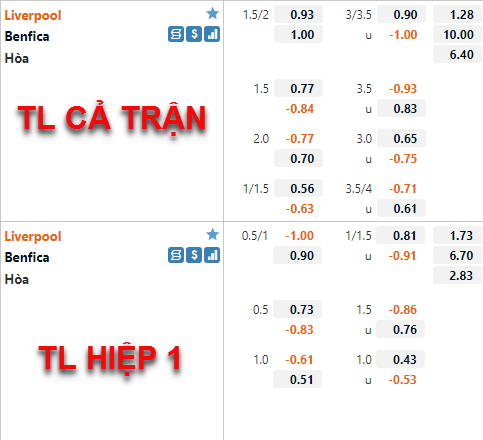 THAM KHẢO: Benfica (+1 1/4) cả trận