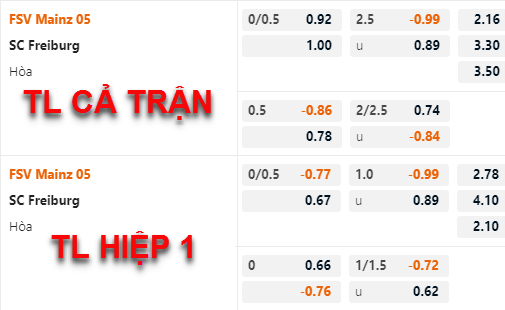 Những diễn biến trên sàn giao dịch đang mang lại thuận lợi cho lựa chọn cửa trên và xỉu. Lựa chọn cửa trên tương đối hợp lý khi Mainz đang duy trì được phong độ tốt, nhưng phía bên kia Freiburg cũng thi đấu tương đối ổn định trên sân khách nên lựa chọn cửa xỉu có lẽ sẽ là phương án tốt hơn ở trận đấu này