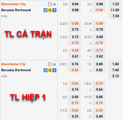 Diễn biến trên sàn giao dịch châu Á thời gian vừa qua cho thấy thị trường không hoàn toàn nghiêng cụ thể về dự đoán nào cho trận đấu này. Những theo quan điểm của người viết Man City vẫn là một lựa chọn đáng chú ý khi đội chủ nhà vẫn duy trì được mức chấp 2 hoà, rõ ràng đây là mức chấp rất cao của Man City trong khi những thống kê kỹ thuật gần đây của Dortmund tương đối tốt.