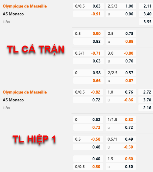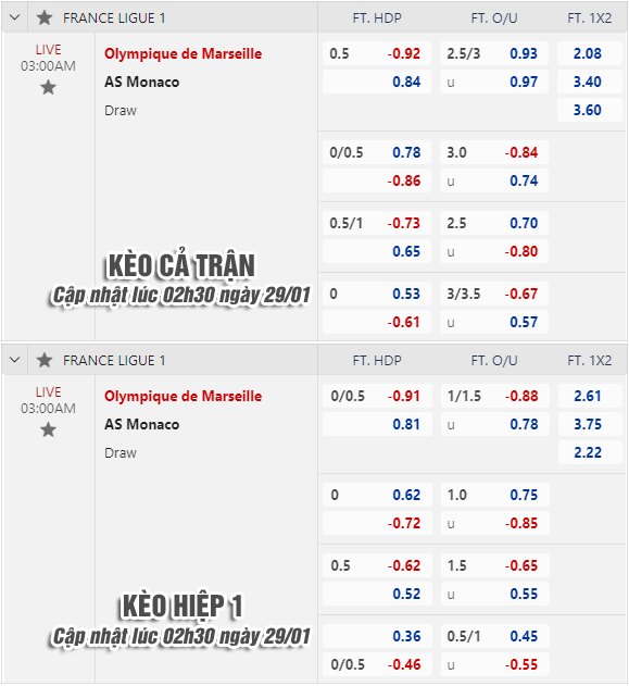 * Chốt kèo trận Marseille vs Monaco (03h00 ngày 29/1)