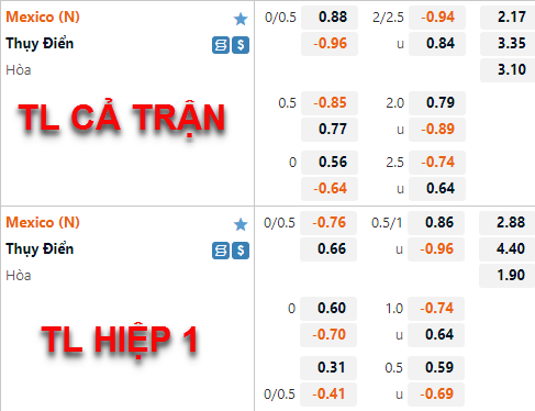 Tỷ lệ chấp chính của Mexico vẫn đang được nhà cái duy trì ở mức 1/4 trên sàn giao địch châu Á, điểm ăn của cửa trên đã được điều chỉnh giảm nhưng không nhiều. Biên phía tỷ lệ tài xỉu của trận đấu cũng có diễn biến tương tự khi mốc 2 1/4 tiếp tục là mốc chính của trận đấu, điểm ăn của cửa tài được điều chỉnh giảm đôi chút.