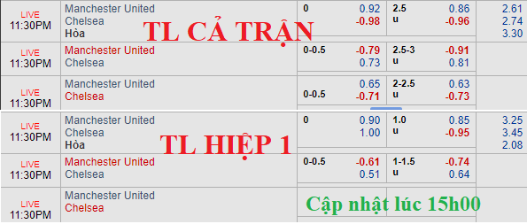 CHỐT KÈO TRỰC TIẾP trận MU vs Chelsea (22h30)