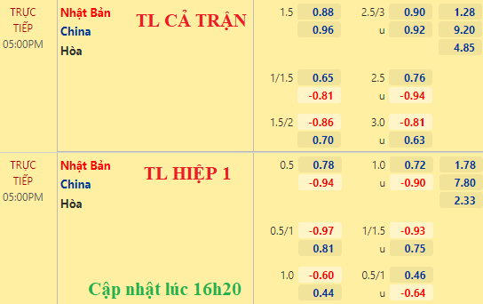Với việc không sử dụng đội hình mạnh nhất, Nhật Bản mất giá khi kèo chấp 1 3/4 ban sáng của họ bị kéo về chỉ còn chấp 1 1/2. Được chơi trên sân nhà và có vị thế cao hơn hẳn, nhưng việc Nhật Bản thiếu đi sức bật về tỷ lệ như vậy là điều đáng lo ngại.